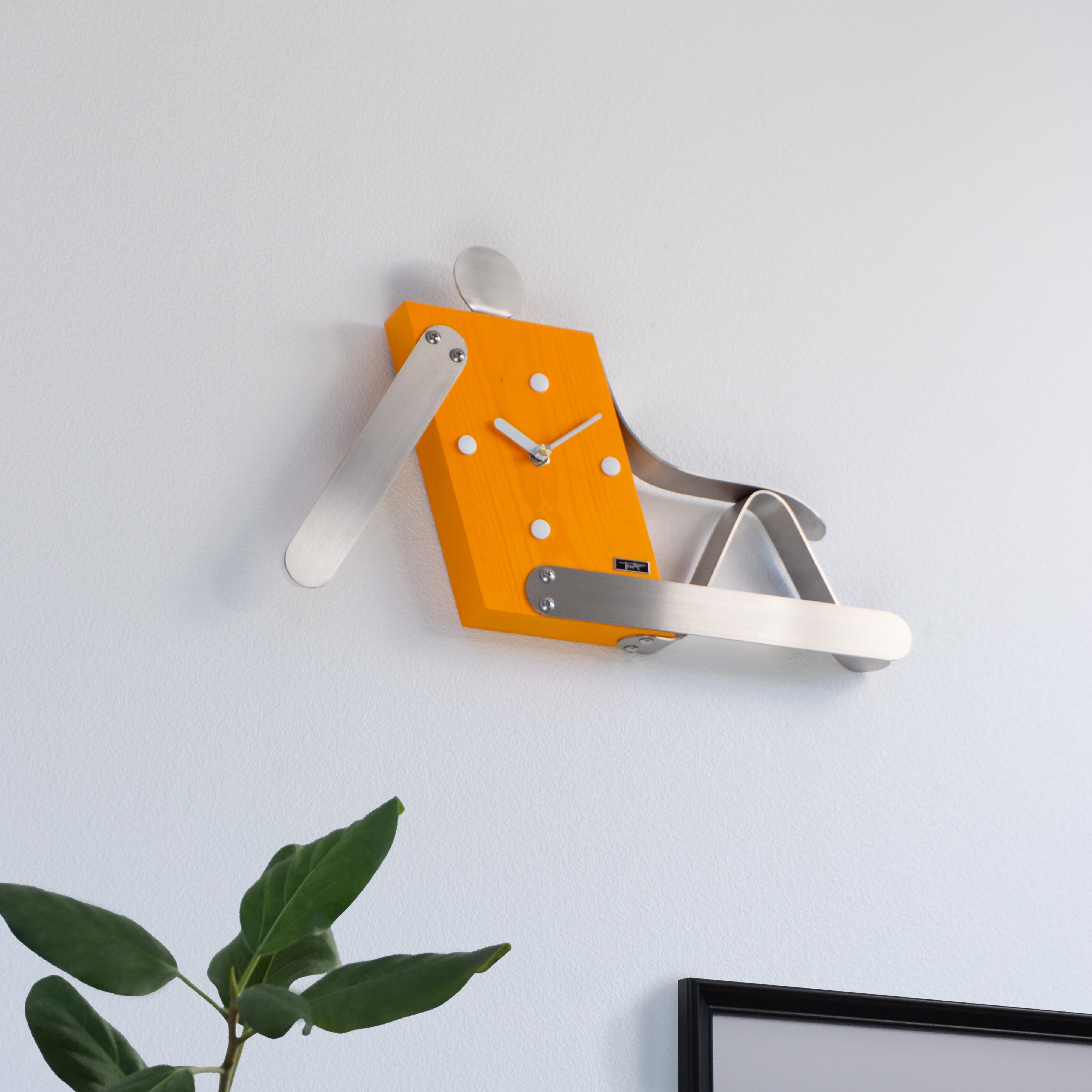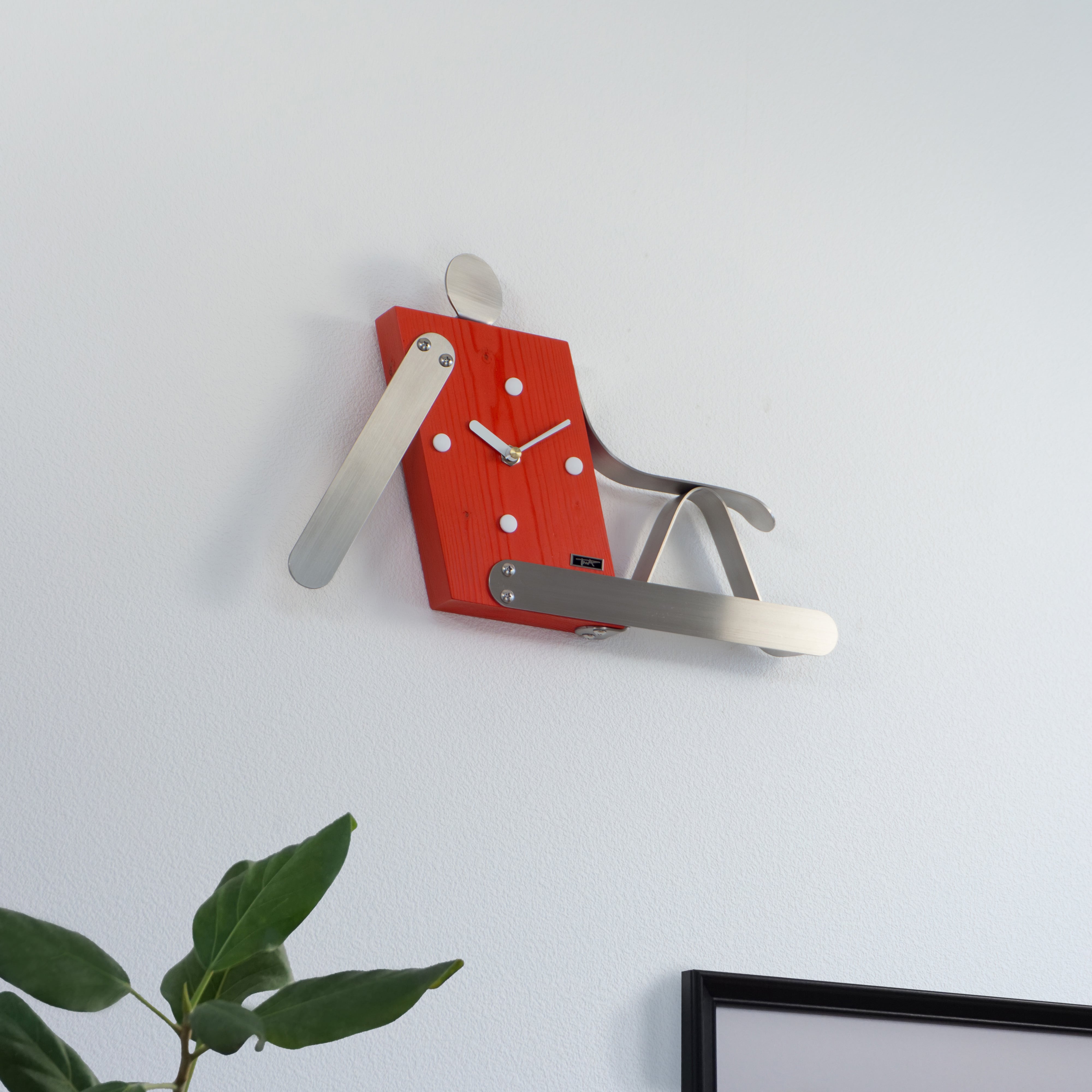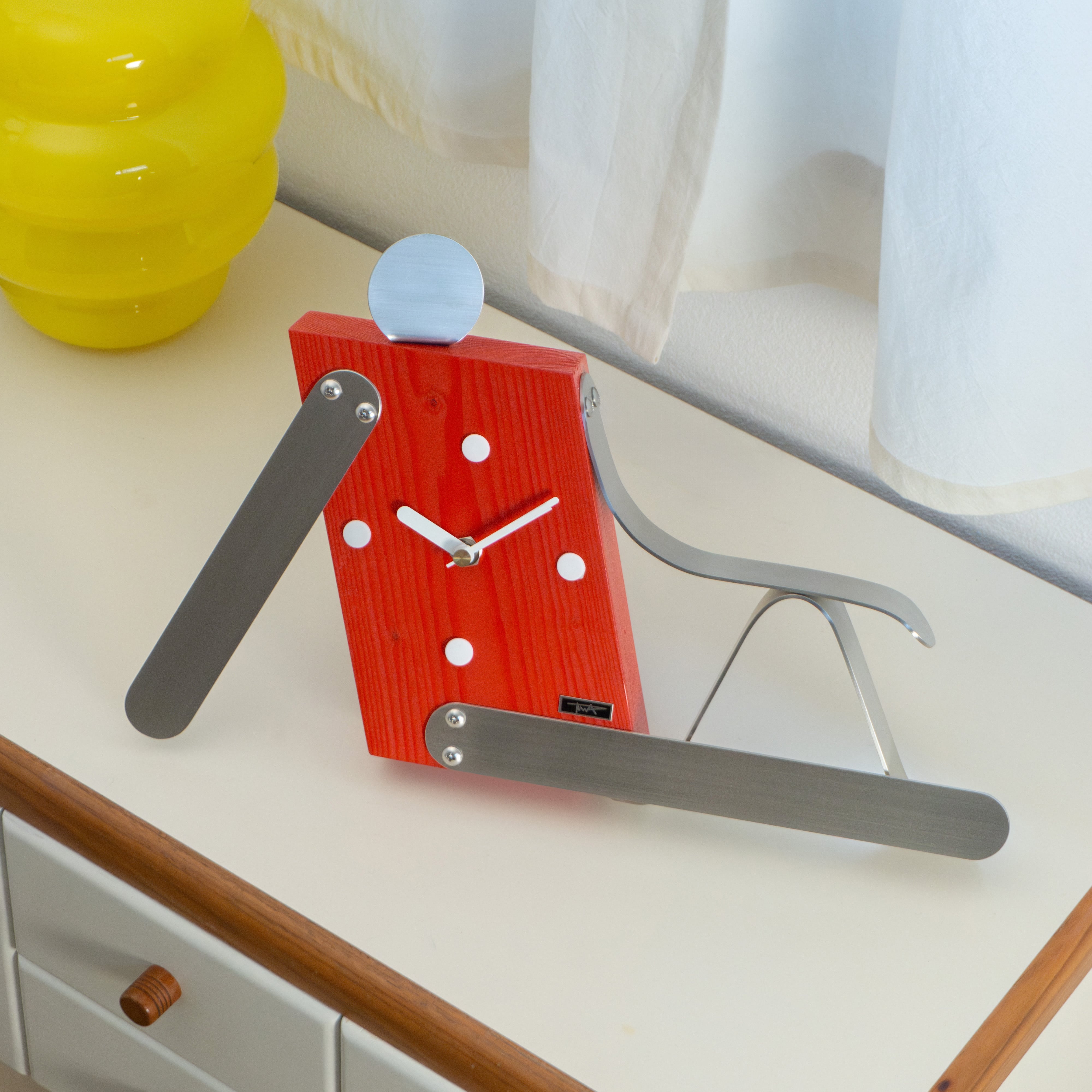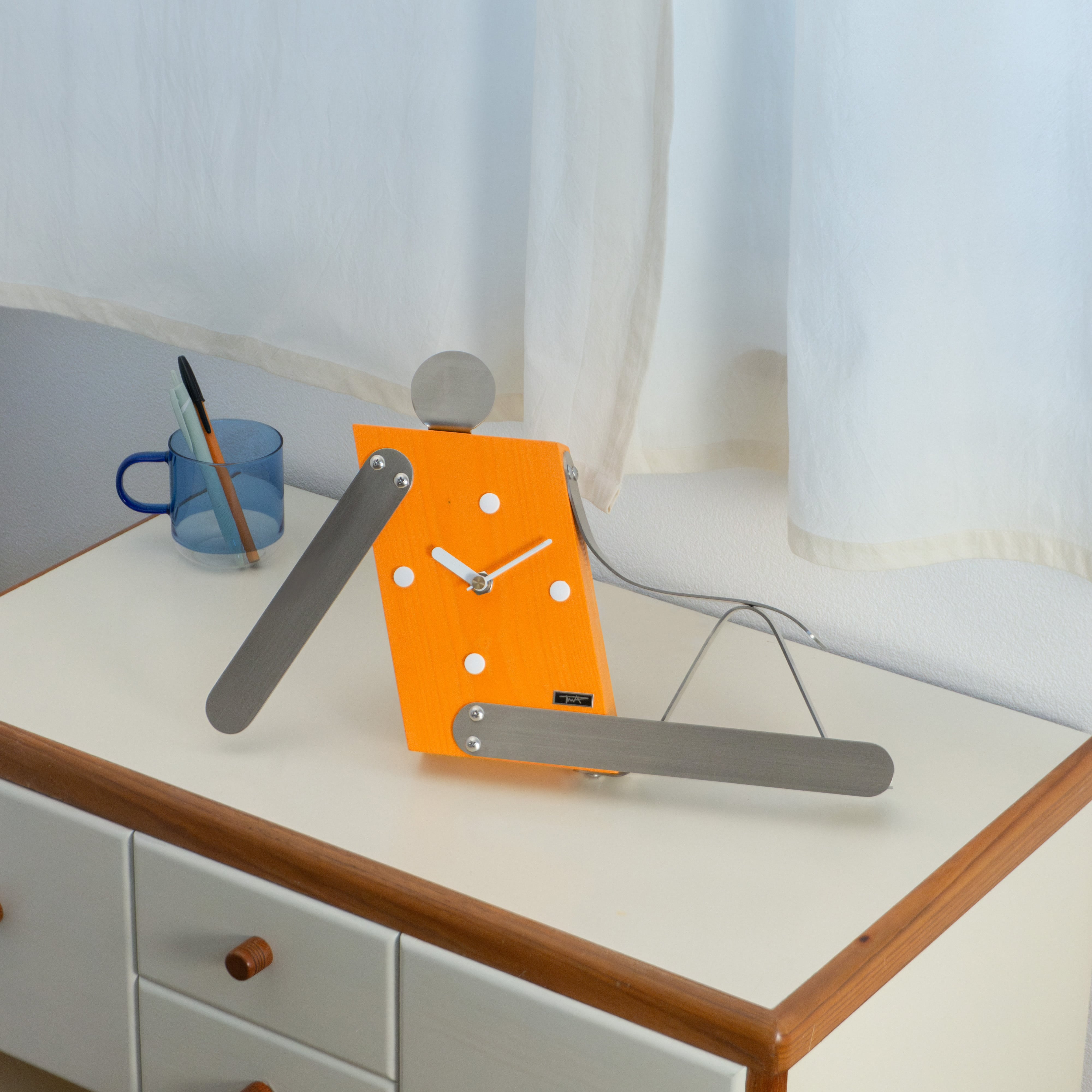 ヨーロッパのウッドトイを思わせる明るいカラーリングのボディに、ヘアライン加工が施されたすっきりとしたステンレスの手足のコントラストが印象的。