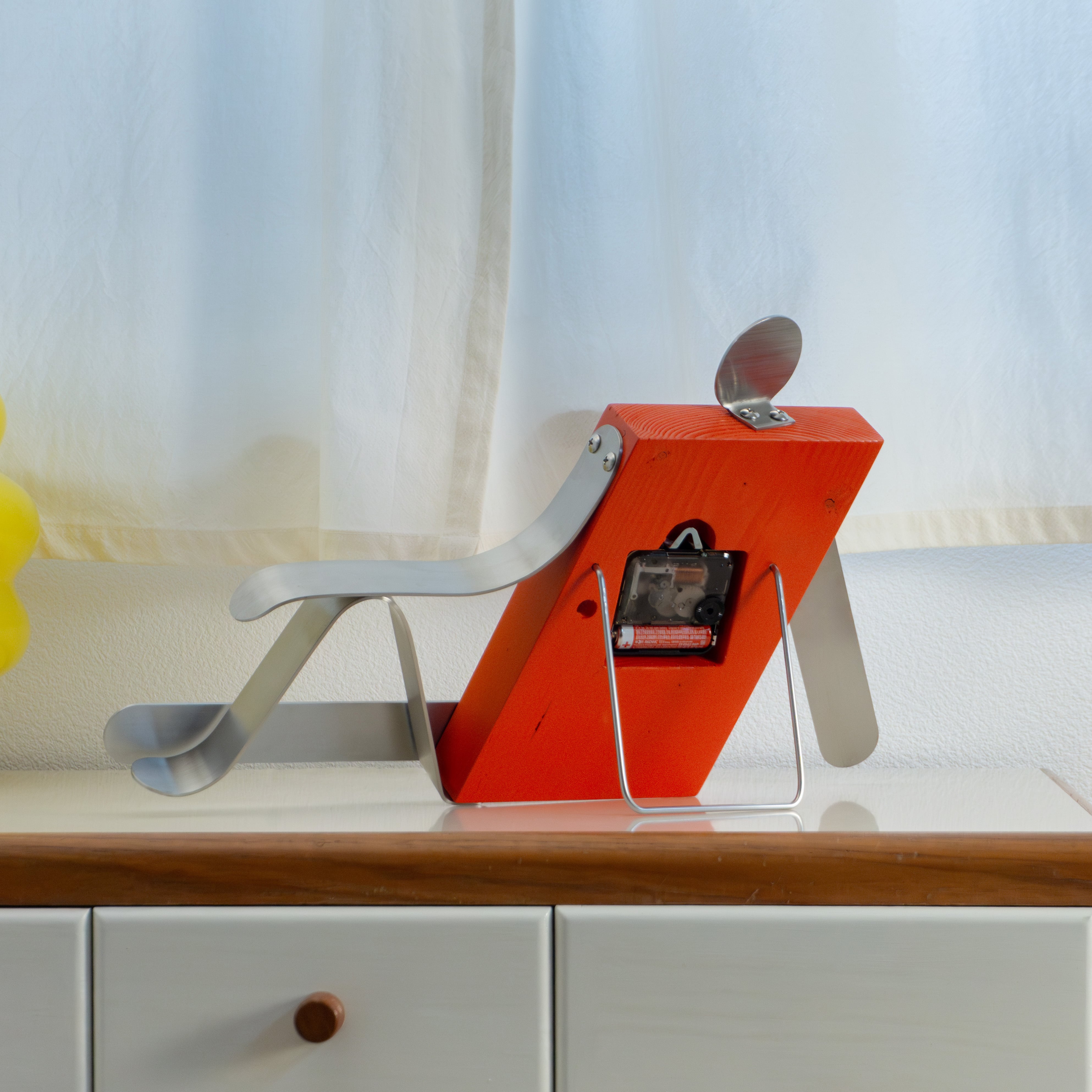 長方形の木のボディに、自由に曲げたステンレスの手足を組み合わせるだけの作りだったが、