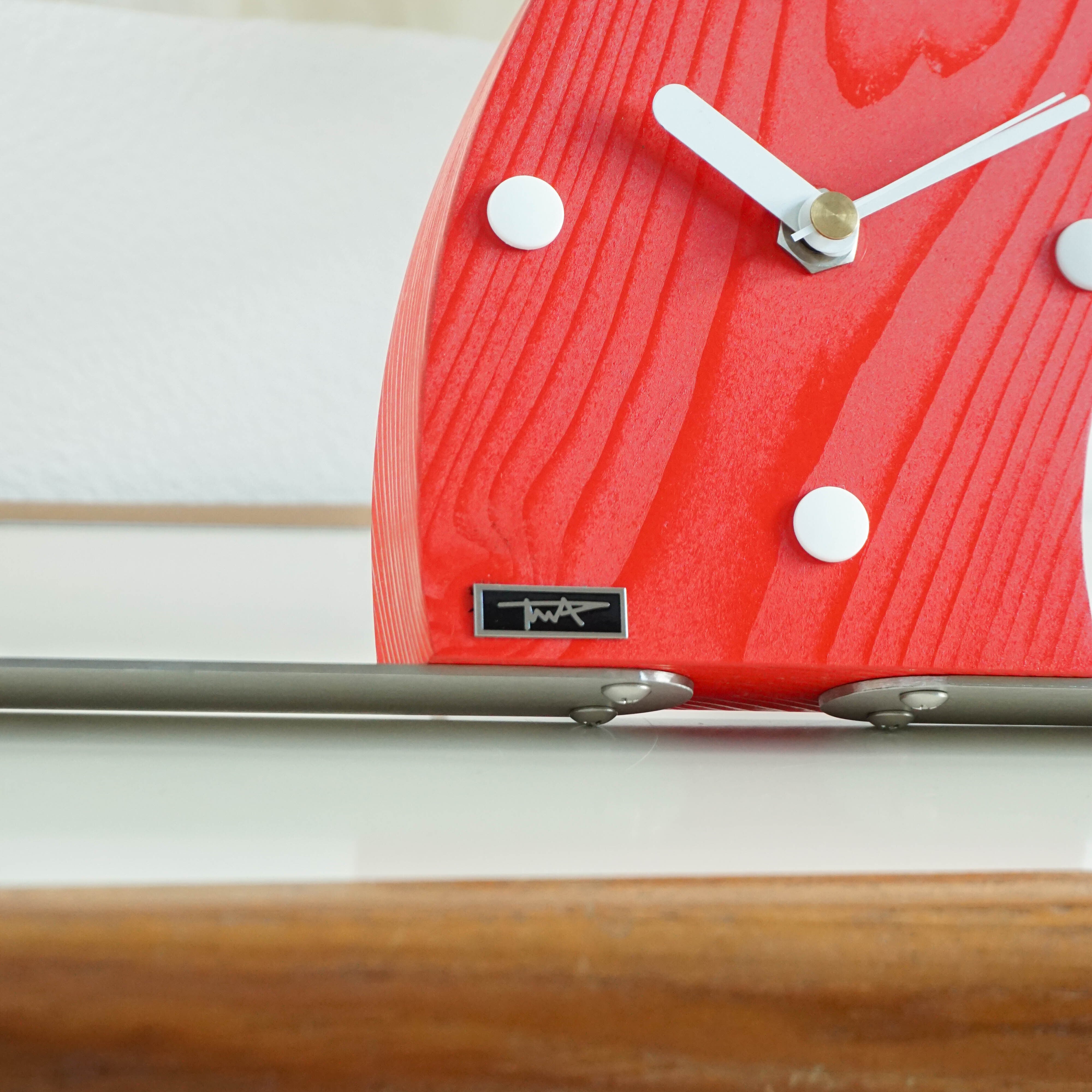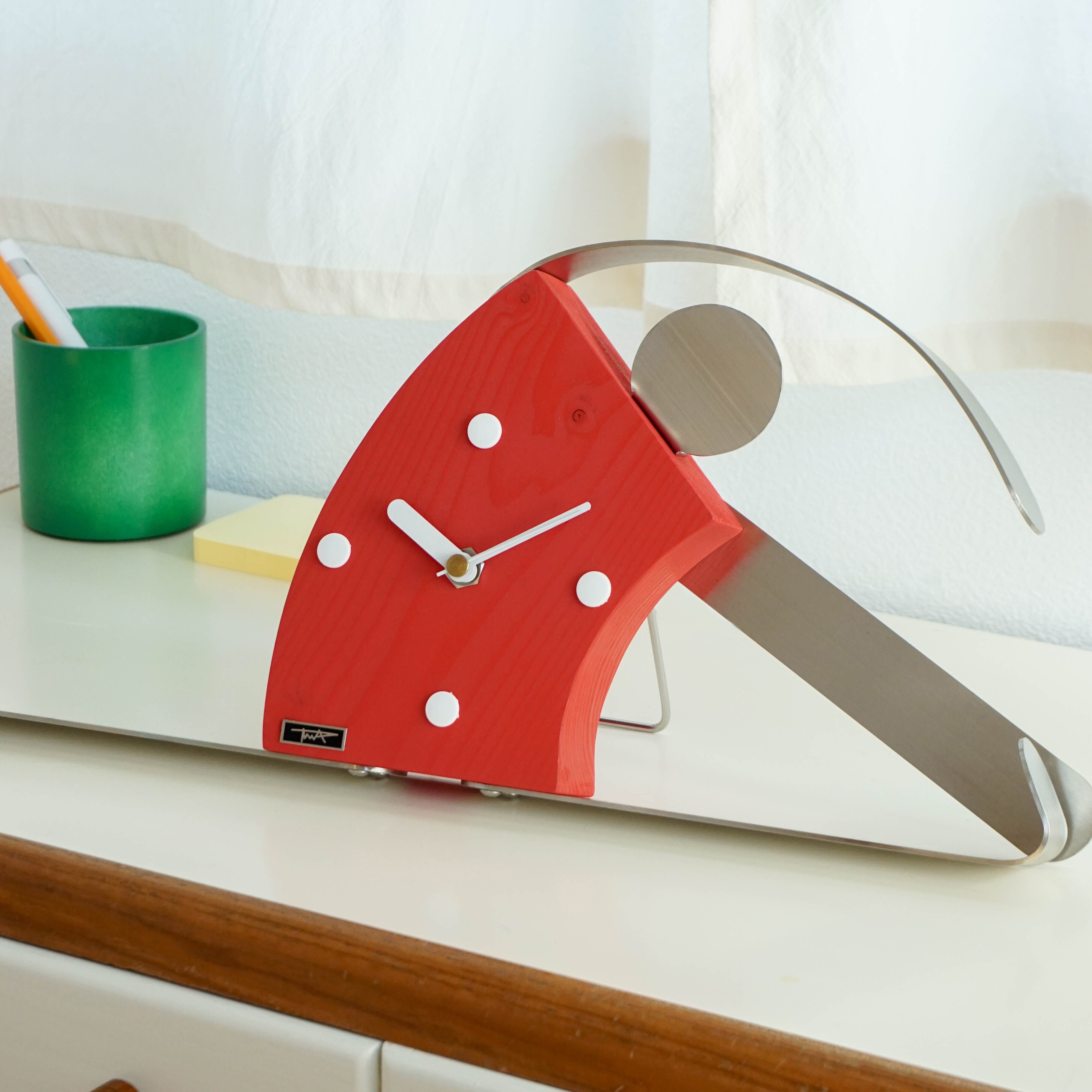 ヨーロッパのウッドトイを思わせる明るいカラーリングのボディに、ヘアライン加工が施されたすっきりとしたステンレスの手足のコントラストが印象的。